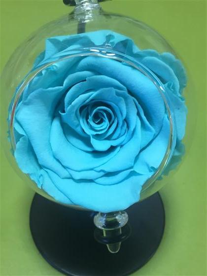 metal and glass stand wirh forever rose rose colour can vary lasts for at least 1 year aqua