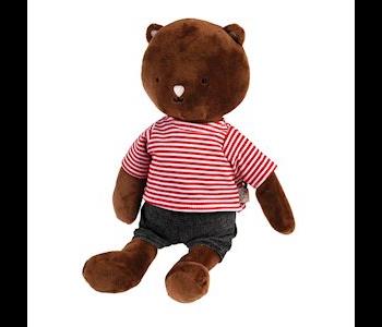Soft Plush Bear Wearing a Top With Stripe Design And Shorts.