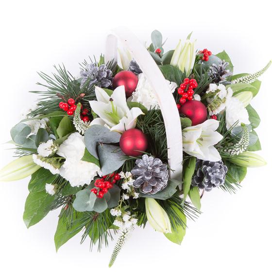 this basket arrangement is a joy to the senses. Picture shows the medium size basket and flowers may vary from day today as these are bespoke made to order on day of delivery